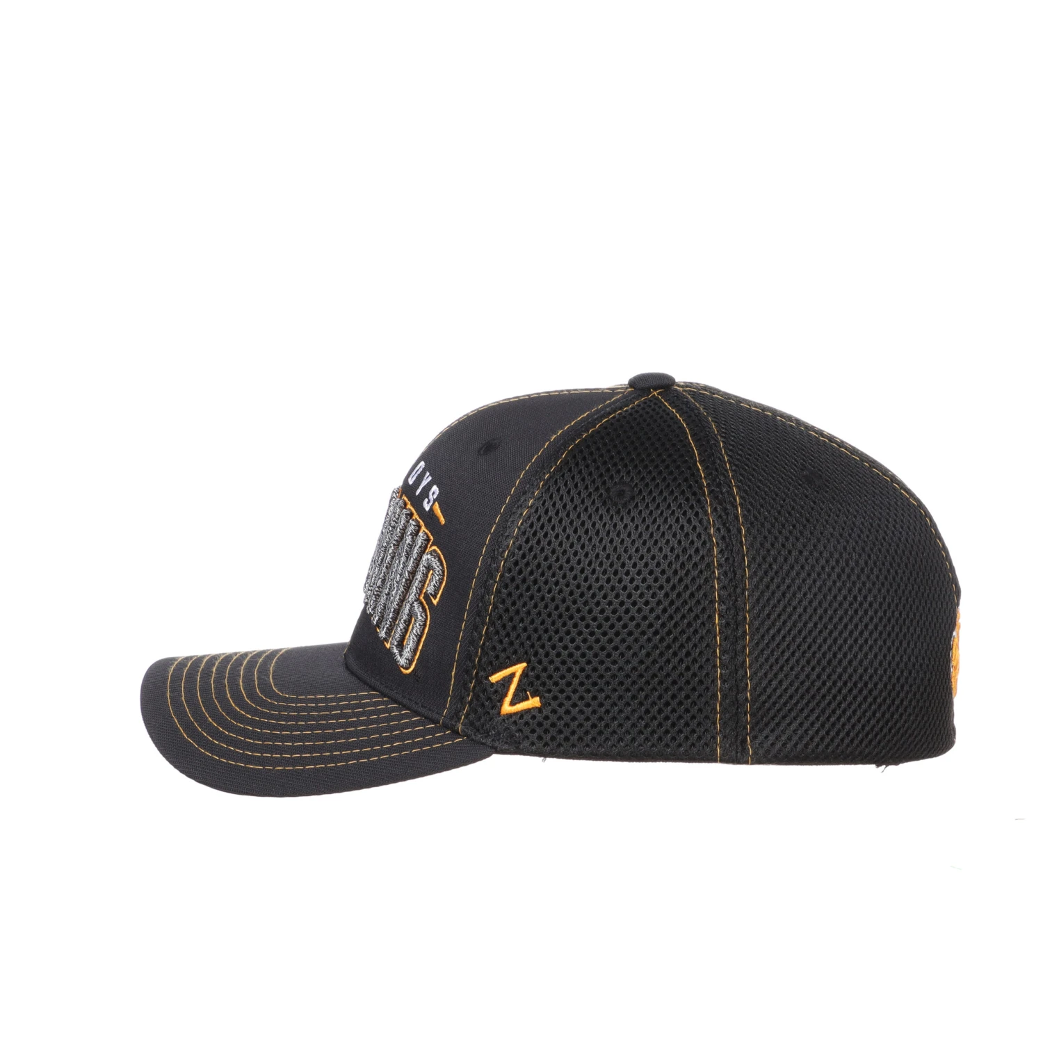 - gold stitching detail on bill and body of hat